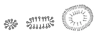 Figure: From left to right: a micelle, a bicelle, and a liposome. A liposome is an empty vesicle enclosed by a bilayer, and is heavily used in experimental design.