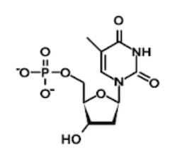 Nucleotides are the basic building blocks of nucleic acids. Combinations of nucleotides store the genetic information in RNA and DNA, and replication of these combinations makes inheritance possible. Each nucleotide consists of three different groups bound together: a phosphate group, a pentose sugar, and a nitrogenous base. The nitrogenous base on each nucleotide is slightly different, giving each nucleotide a unique identity. In DNA, the four nucleotides are known as adenosine monophosphate (adenine), guanosine monophosphate (guanine), cytidine monophosphate (cytosine), and deoxythymidine monophosphate (thymine).