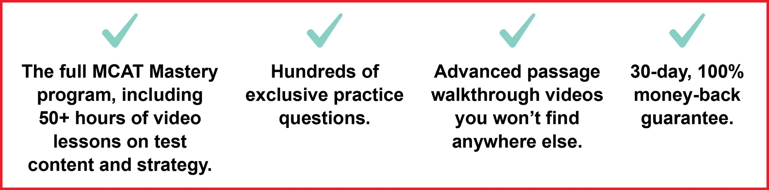 Try the entire MCAT Mastery program. If you don’t love it, request your money back. We’ll even eat the credit card processing fees.