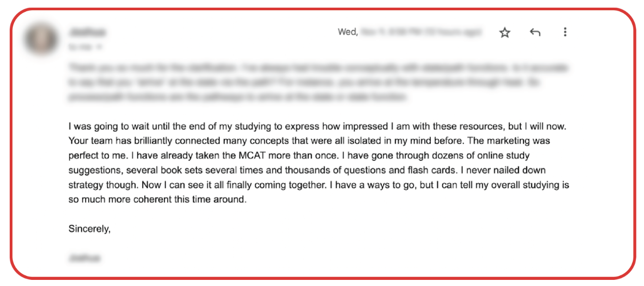 We distilled all of this information to create MCAT Mastery from scratch because we found no materials that adequately cover every aspect of test content and strategy without the fluff. We wanted you to have a system that’s efficient and effective.