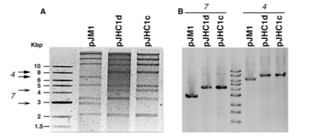 FIGURE 1. RESTRICTION DIGESTION PATTERNS OF CELL STRAINS 531AD (PJHC1D) AND 531AC (PJHC1C).
